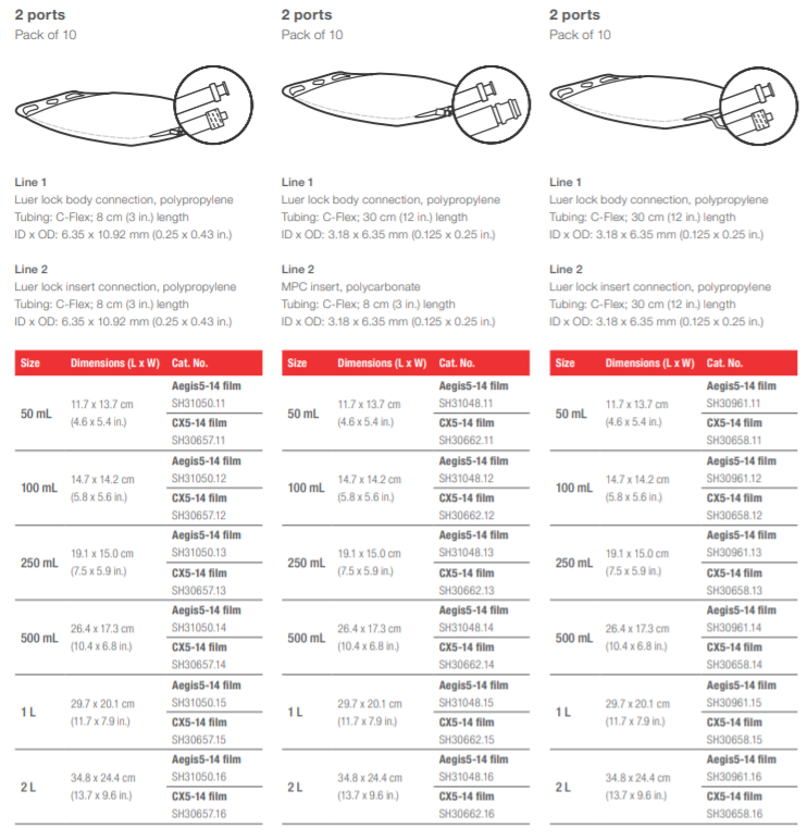 Bu Labtainer™ BPC’ler yerden tasarruf sağlar, ergonomiktir ve Thermo Scientific™ Aegis™ 5-14 ve CX5-14 filmlerinden yapılmıştır. Ürün konfigürasyonları bir dizi endüstri standardı bağlantı sistemini kapsar; taşıma ve depolama için taşıma sistemleri mevcuttur.