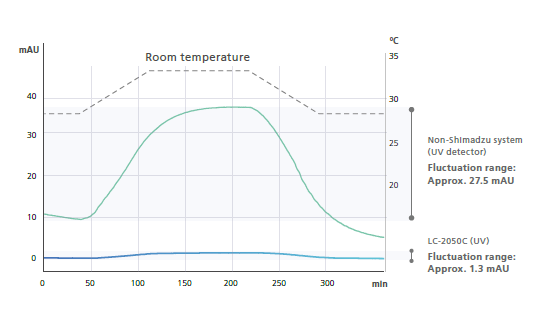 Bu, oda sıcaklığı değişimine daha az duyarlı olan daha kararlı bir taban çizgisi ve eser bileşenlerin doğrulama testi ve kantitatif testi sırasında daha yüksek hassasiyet sağlar.