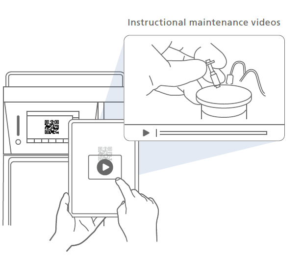Dokunmatik panelde gösterilen bir QR Code® okunduğunda, kullanıcı bakımla ilgili eğitici videolar içeren bir web sitesine yönlendirilir.