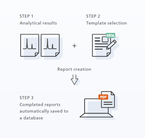 LabSolutions’daki otomatik rapor oluşturma işlevi, analitik sonuçları otomatik olarak derler ve verileri önceden hazırlanmış rapor şablonlarında sunar.