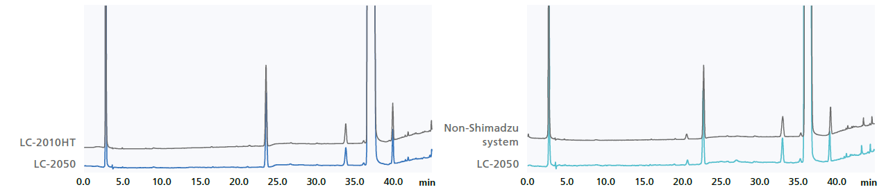 i-Serisi, sistem uyumluluğunu ve veri tekrarlanabilirliğini sağlamak için önceki Shimadzu sistemleri ve rakip sistemlerle aynı dahili sistem hacimlerinde tasarlanmıştır.