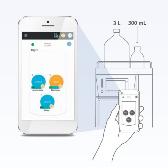Bu zorluğun üstesinden gelmek için Mobil Faz Monitörü (opsiyonel), maksimum çalışma süresi sağlamak için mobil faz seviyelerinin gerçek zamanlı, gravimetrik izlenmesini sağlar. Mobil faz veya otomatik örnekleyici durulama solüsyonu seviyeleri, 1 litrelik şişelerde 6 sıvıya kadar, 2-5 litrelik geniş hacimli şişerlerde 3 sıvıya kadar izlenebilir.