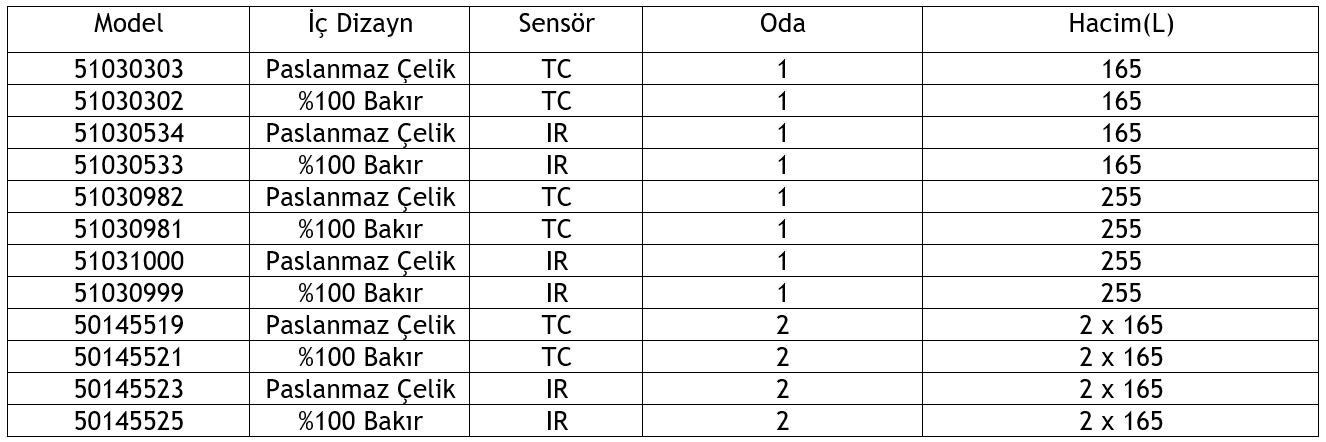 - Kompakt ayak izine sahip 165L ve 255 L seçenekleriyle elektropolisaj cilalı paslanmaz çelik ve bakır hazne, kolayca istiflenebilir