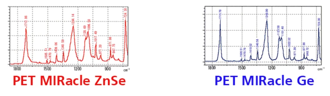 ATR aksesuarları çok çeşitli numuneleri ölçmek için kullanılabilir; bununla birlikte, spektrumlar basınç miktarına bağlı olarak değişebilir veya kristal malzemeye bağlı olarak küçük bir kaymaya sahip olabilir. Shimadzu’nun LabSolutions IR Yazılımı, kristal malzemeden gelen etkileşimleri düzeltmek için bir ATR düzeltmesi sunar.