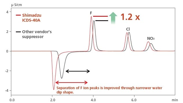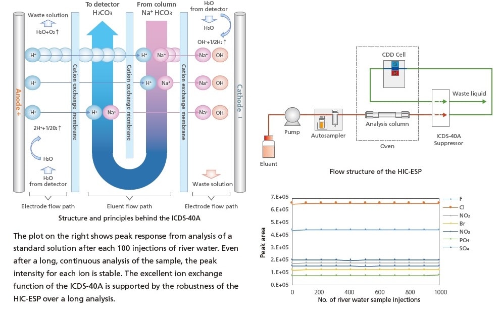 Yeni ICDS™-40A anyon baskılayıcı ünitesi, optimize edilmiş diyalitik ile birlikte, eluent akış yolunun geriye doğru kıvrıldığı benzersiz bir tasarımla, küçük bir iç hacmi korurken daha yüksek verimlilik ve kararlı bastırma sağlar. Bu baskılayıcıyı yüksek kaliteli HPLC birimleriyle birleştirmek, son derece güvenilir analitik sonuçlar sağlar.