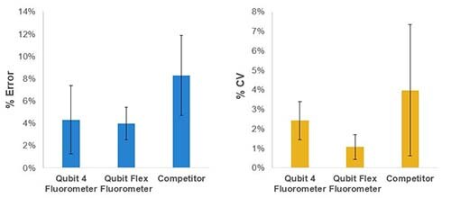 Qubit testleri ve Qubit tüp şeritleri ile birleştirilmiş Qubit Flex Florometre, ilgilenilen biyomoleküle özel floresan boyaları kullanarak doğru ve güvenilir veriler sağlar. Çok düşük konsantrasyonlarda bile bu boyalar sadece hedef moleküle bağlandıklarında ışık yayarlar.
