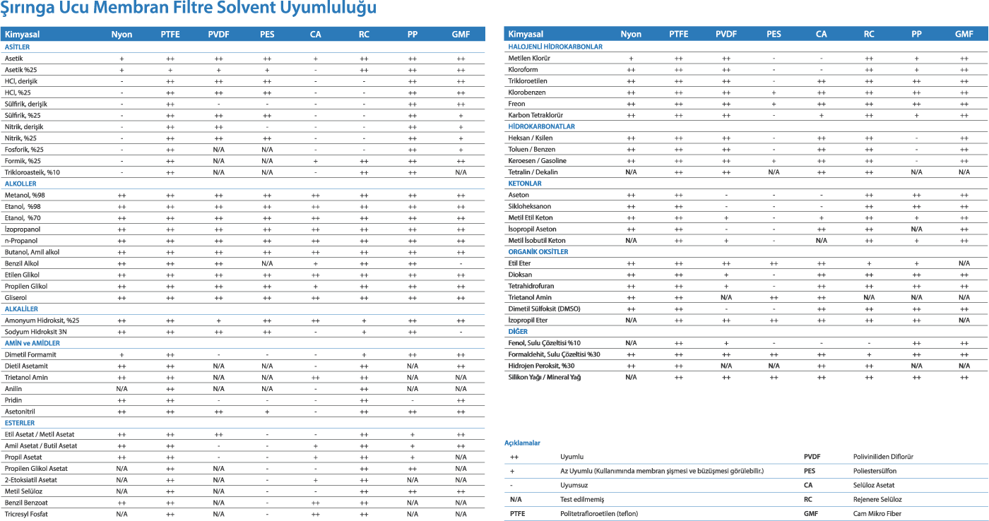 - Hidrofilik PVDF membran ile geniş kimyasal uyumluluk gösterir.