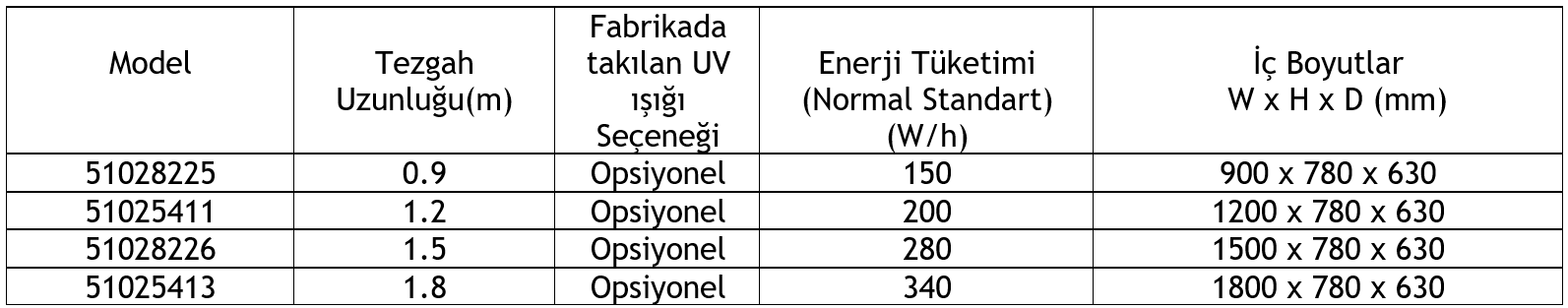 - 90cm, 120cm, 150cm ve 180cm olarak mevcuttur