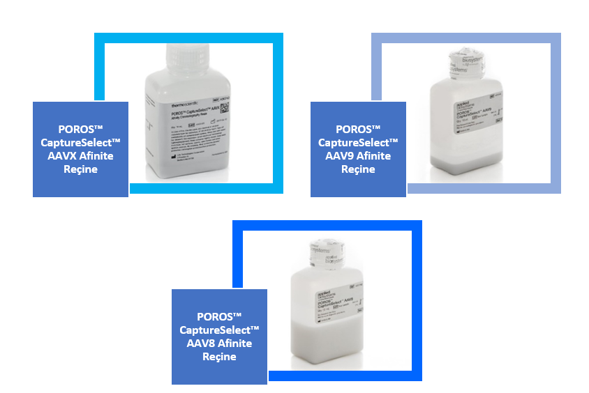 Thermo Fisher Scientific, viral vektör üretiminin ölçeğinin büyütülmesini sağlayan aşağı akış saflaştırma çözümleri geliştirdi. POROS™ ve CaptureSelect™ AAV afinite reçineleri, geniş bir AAV serotip aralığı için ölçeklenebilir bir yakalama adımı sağlar ve bu moleküllerin aşağı akış işleminde önemli bir gelişme sunar.