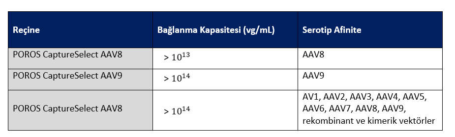 POROS™ CaptureSelect™ AAV Afinite Reçinelerinin kullanımı, AAV vektörlerinin aşağı yönde proseslerinde önemli bir gelişmeyi temsil eder.