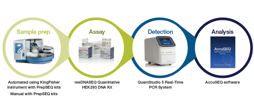 ResDNASEQ™ kiti, kalıntı konak hücre DNA’sının hassas ve doğru kantitasyonunu sağlamak için özel olarak tasarlanmış ve geliştirilmiş, kantitatif PCR tabanlı bir testtir.