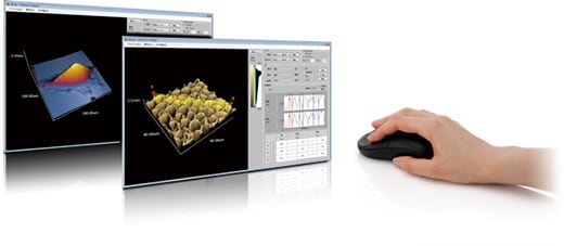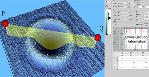 Görüntüler serbestçe döndürülebilir, yakınlaştırılabilir ve görüntüleme açısını veya büyütme seviyesini sezgisel olarak ayarlamak için fare kullanılarak Z ekseni büyütmesi değiştirilebilir. Yükseklik bilgisi ile kaplanmış numune fiziksel özelliklerini görüntüleyen bir doku işlevi veya bir 3D enine kesit profil analiz işlevi gibi karmaşık analitik araçların kullanılması, görüntü doğrulama çalışmasının verimliliğini önemli ölçüde artırır.