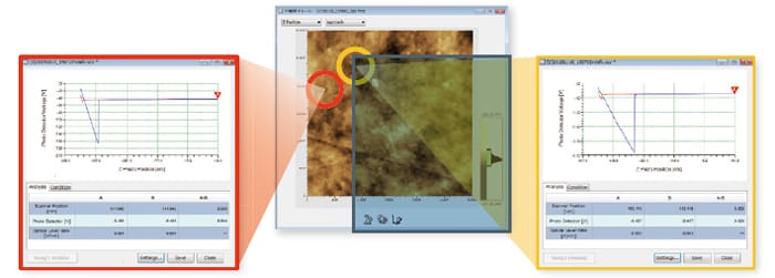- Yapışma kuvveti ve Young modülü, belirli bir hedef konumda, o noktadaki kuvvet eğrisi ölçülerek (nokta analizi) değerlendirilebilir.