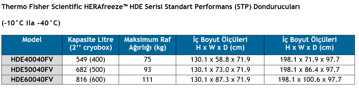 Thermo Scientific™ HERAfreeze™ HDE Serisi -40°C ultra düşük sıcaklıklı dondurucular, H-drive ile çalışır, üç dik modele sahiptir ve depolama kapasitesini 40.000’den 60.000’e kadar 2 mL’ye kadar maksimize eder. HDE Serisi, her laboratuvar için en üst düzeyde numune güvenliği ve operasyonel tasarruf sağlayan sürdürülebilir ve güvenilir bir çözümdür.