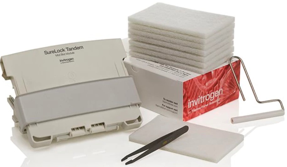 SureLock Tandem Midi Jel Tank, SureLock Tandem Midi Blot Modülü ile eşleştirildiğinde ıslak tank transferleri için kullanılabilir. SureLock Tandem Midi Blot Modülü, aşağı akış western blot analizi için verimli, oda sıcaklığında, ıslak protein transferleri gerçekleştirir. Tank, bir seferde bir veya iki jelin transferine izin veren iki blot modülünü barındırır. SureLock Tandem Blot Modülünün benzersiz tasarımı, diğer ıslak transfer sistemlerine göre çok daha az transfer tamponu (her transfer için sadece ∼300 mL) kullanır. Bu düşük tampon gereksinimi, metanol atığı (tehlikeli bir madde) miktarını minimumda tutar.