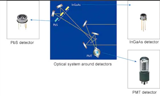 Fotoçoğaltıcı tüp (PMT – photomultiplier tube) ve InGaAs dedektörü arasında geçiş 700 ila 1.000 nm aralığında mümkündür (varsayılan geçiş dalga boyu 830 nm’dir). 1.600 ila 1.800 nm aralığında InGaAs dedektörü ile PbS dedektörü arasında geçiş yapmak mümkündür (varsayılan geçiş dalga boyu 1.650 nm’dir).