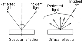 Opak (katı) numunelerin içinden ışık geçmediği için, numunelerin üzerinden yansımaktadır. Şekilde görüldüğü üzere, normal çizgiye göre simetrik olarak yansıyan ışık “spekular yansıma,” farklı yönlere saçılan ışık ise “difüz yansıma” olarak tanımlanmaktadır.